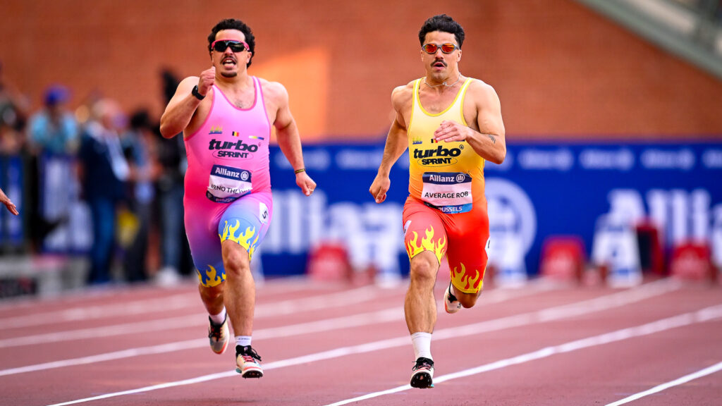 After the Turbo Cross, the legendary cyclo-cross race in which Average Rob had famous Belgians slogging through the mud, it was time for the first Turbo Sprint. Eight content creators from Belgium and abroad competed against each other in the iconic 100-metre sprint on the track of the King Baudouin Stadium. Rob’s brother Arno The Kid was also there.